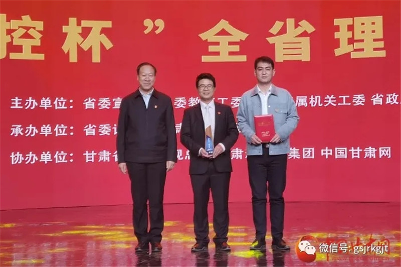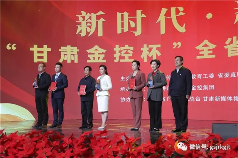 省委宣傳部副部長、省新聞出版局(版權局)局長王成勇,省文明辦主任羅鳳存,甘肅金控集團黨委副書記張斌,省直機關工委副書記薛生家,省金融監管局黨組成員、副局長李虹出席活動并為獲獎者頒獎。參加頒獎典禮的還有甘肅日報社副總編輯張國華,省廣電總臺黨委委員、副臺長王小樞,蘭州大學黨委宣傳部部長安俊堂,省委講師團團長黃霆。