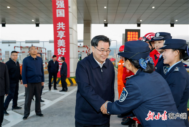 調研中,胡昌升沿途檢查節日期間道路交通安全工作,在G22青蘭高速蘭州東收費站看望慰問堅守在一線的工作人員,向他們致以節日的問候。他強調,要科學研判假期客貨流量形勢,優化指揮調度,加強管控疏導,全力以赴保通保暢保安全。要加強重要路段路況巡查,全面排查整治道路交通安全隱患,從嚴整治疲勞駕駛和超載、超速、超員行為,全力守護人民群眾安全出行。