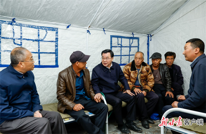 10月1日,省委書記、省人大常委會主任胡昌升深入定西市漳縣、隴西縣和天水市武山縣,看望慰問隴西地震受災群眾,調研指導災后恢復重建工作。(記者孟捷)