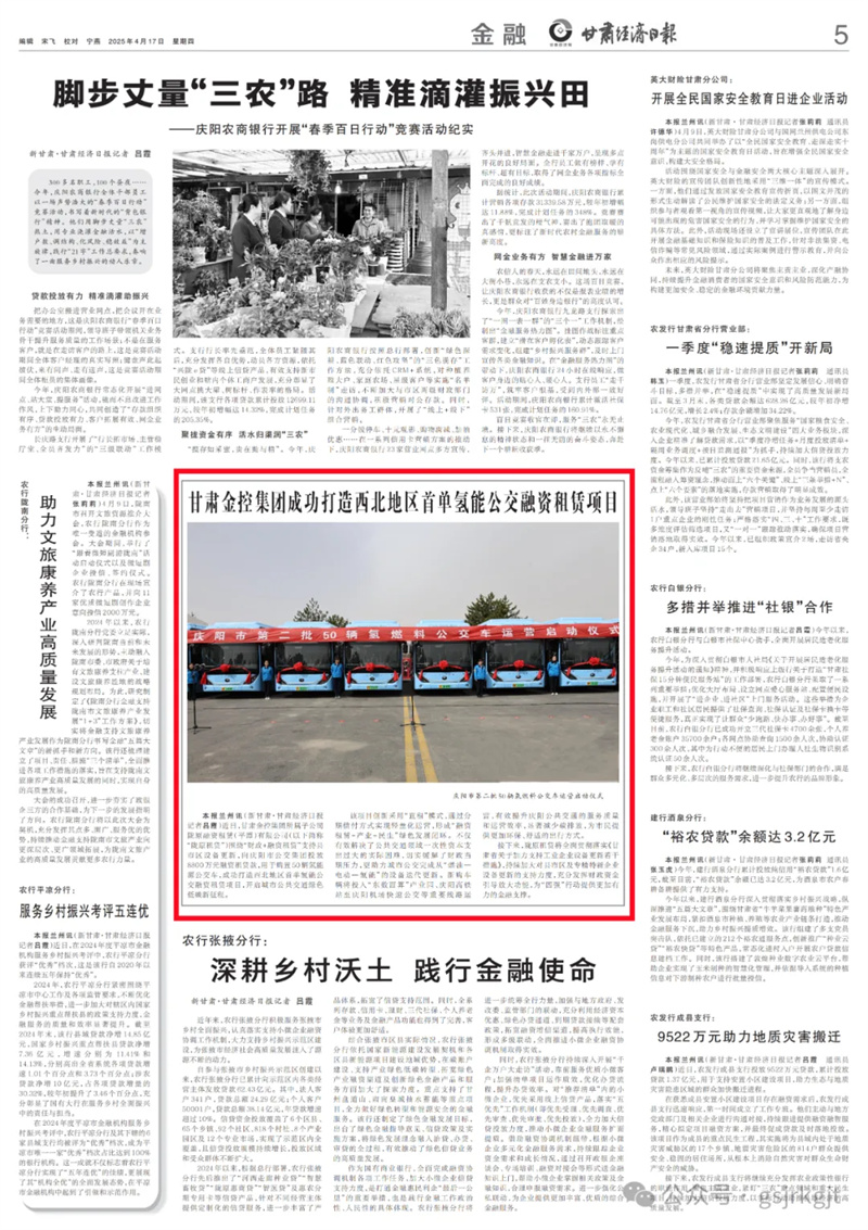 媒體關注 | 甘肅金控集團成功打造西北地區首單氫能公交融資租賃項目