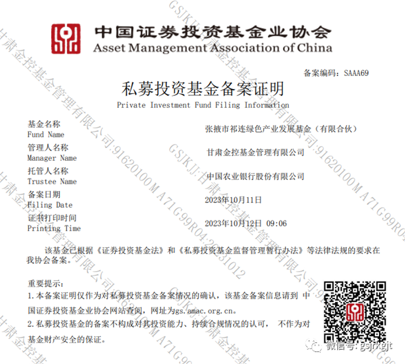 “三抓三促”我們在行動 | 張掖市祁連綠色產業發展基金順利通過基金業協會備案