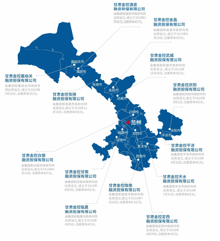 甘肅省融資再擔保集團有限公司成立于2001年1月,是甘肅省“首批全國中小企業信用擔保體系試點范圍的擔保機構”、“首批省級示范信用擔保機構”、“首批《融資性擔保機構經營許可證》獲證單位”,自2012年起,連續三年榮獲“省長金融獎”。2020年4月由甘肅省再擔保集團有限公司更名為甘肅省融資再擔保集團有限公司,2018年1月省政府國資委將所持甘肅再擔保公司股權劃轉甘肅金控集團。注冊資本9.64億元,參股全省58家縣(區)政策性融資擔保機構。